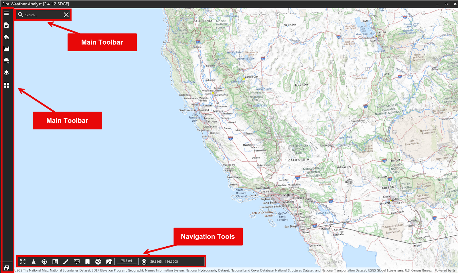 This is where you can find all the core tools within the application. Click the hamburger icon at the top, to extend the main toolbar.