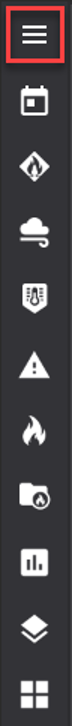 La barra de herramientas principal es donde encontrará las herramientas principales de FireRisk y FireSim. Esta barra de herramientas se encuentra en el lado izquierdo de la aplicación en un menú vertical. Se puede ampliar haciendo clic en el icono con tres líneas horizontales en la parte superior de la barra de herramientas.