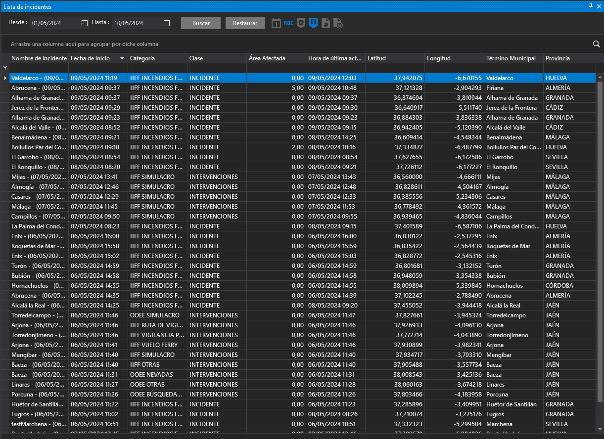Por ejemplo, arrastre la columna Termino Municipal a la barra superior y organice los incidentes por ese campo.