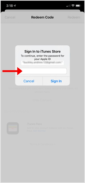 3. If prompted, enter your Apple ID/iTunes Store password and tap “Sign In”
