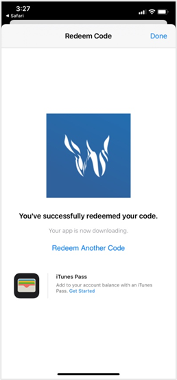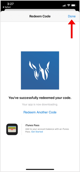 Click on the Redemption Code URL Link in the provided email on your iOS device.