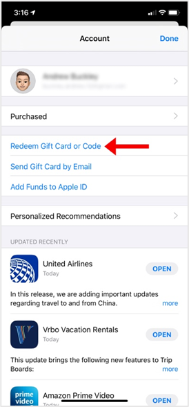 Method 2: Manually enter the provided Redemption Code in your IOS device’s App Store.