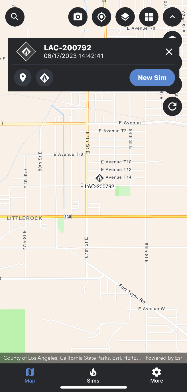 Once an incident has been selected, a pop-up card will appear at the top of the map screen.