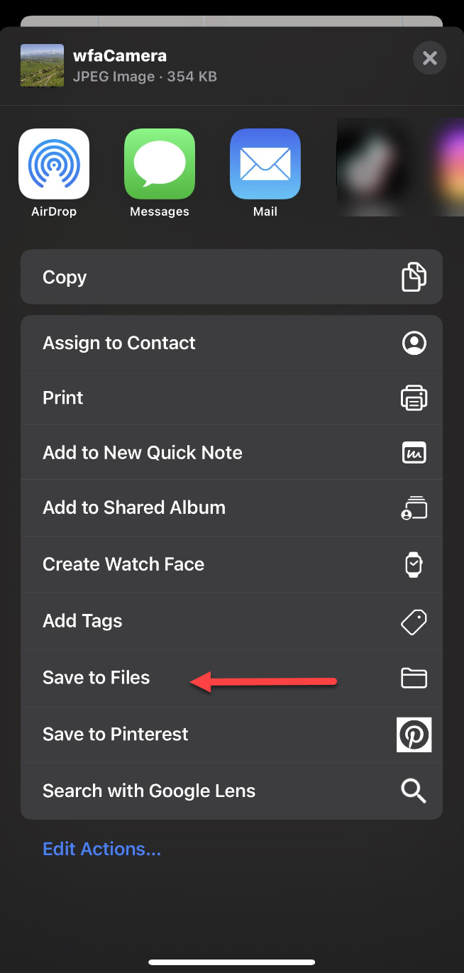 WFA Mobile gives you the ability to save the image from a selected camera to your device’s gallery. To do this, follow the steps below: