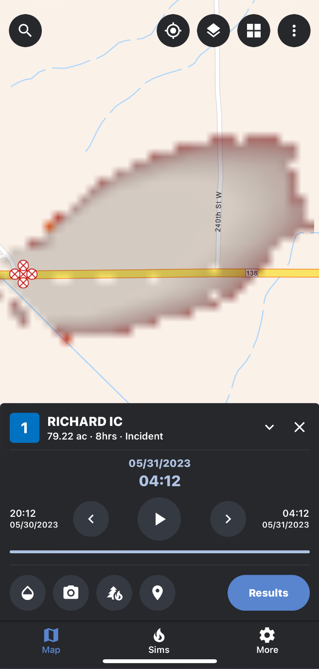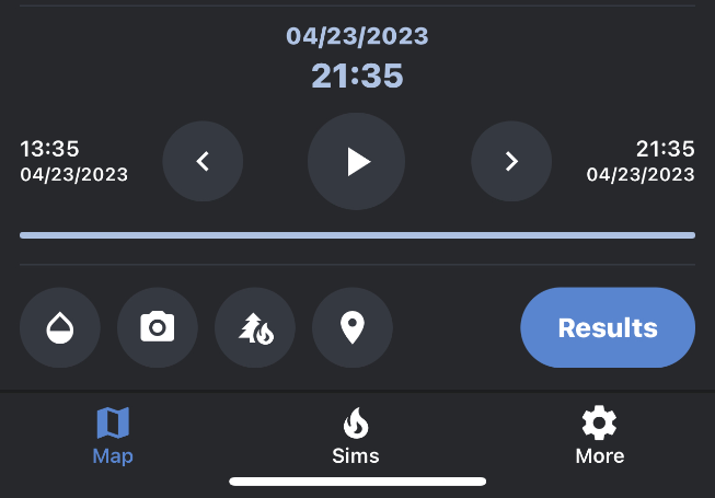 Using the timestamp controls, you can also animate the simulation in a loop. To animate the simulation, tap the play button located in the center of the control panel. To stop the animation, tap the pause button.