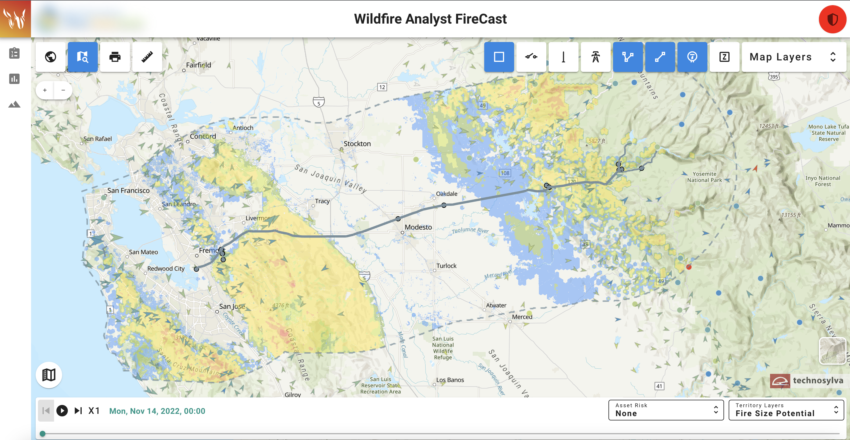 The following Territory Risk layers are currently not displaying properly on the map: Fire Size Potential, Population Impacted, Buildings Threatened, and Estimated Buildings Destroyed. These risk metrics are still working as expected when viewing the Asset Risk layers and profiles, but not for the territory-wide risk. The team is actively working on resolving the issue and this will be the team’s priority the week of April 17, 2023.