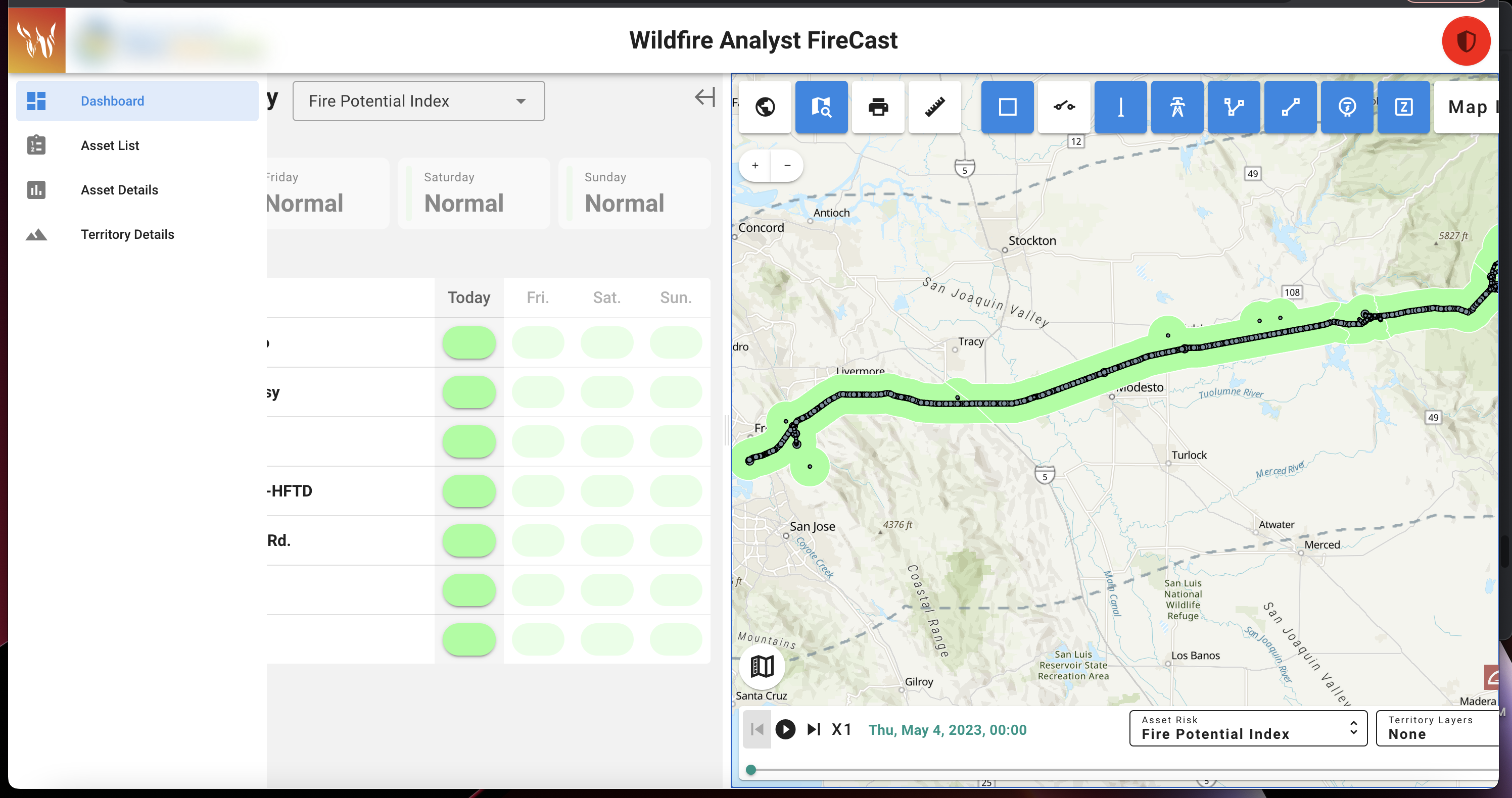 Users can also click on any zone from the map and click “view details” for that point in the zone to view the profiles for all risk, weather, and fuel metrics.