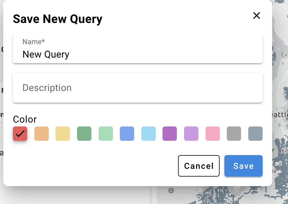 When you save the query, a new pop-up window appears to offer a query description field and color-coding your queries. Complete the fields in this window and hit “Save” to store the query for future use.