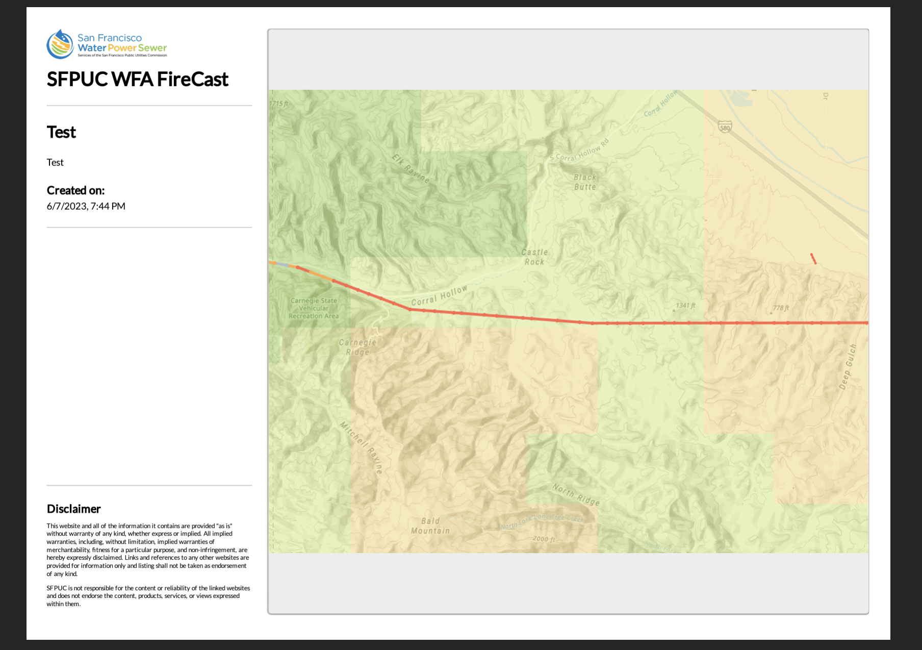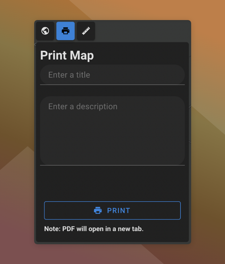 The print map tool gives you the ability to generate a screenshot and pdf document to share.