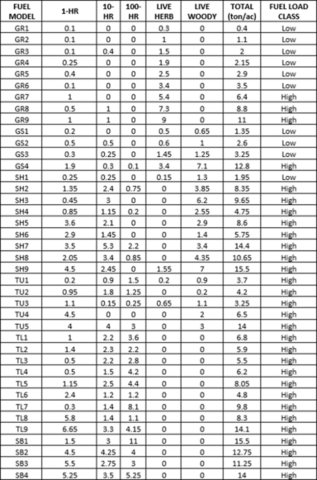 Road Classes Based on Road Category and Surrounding Fuels | ||