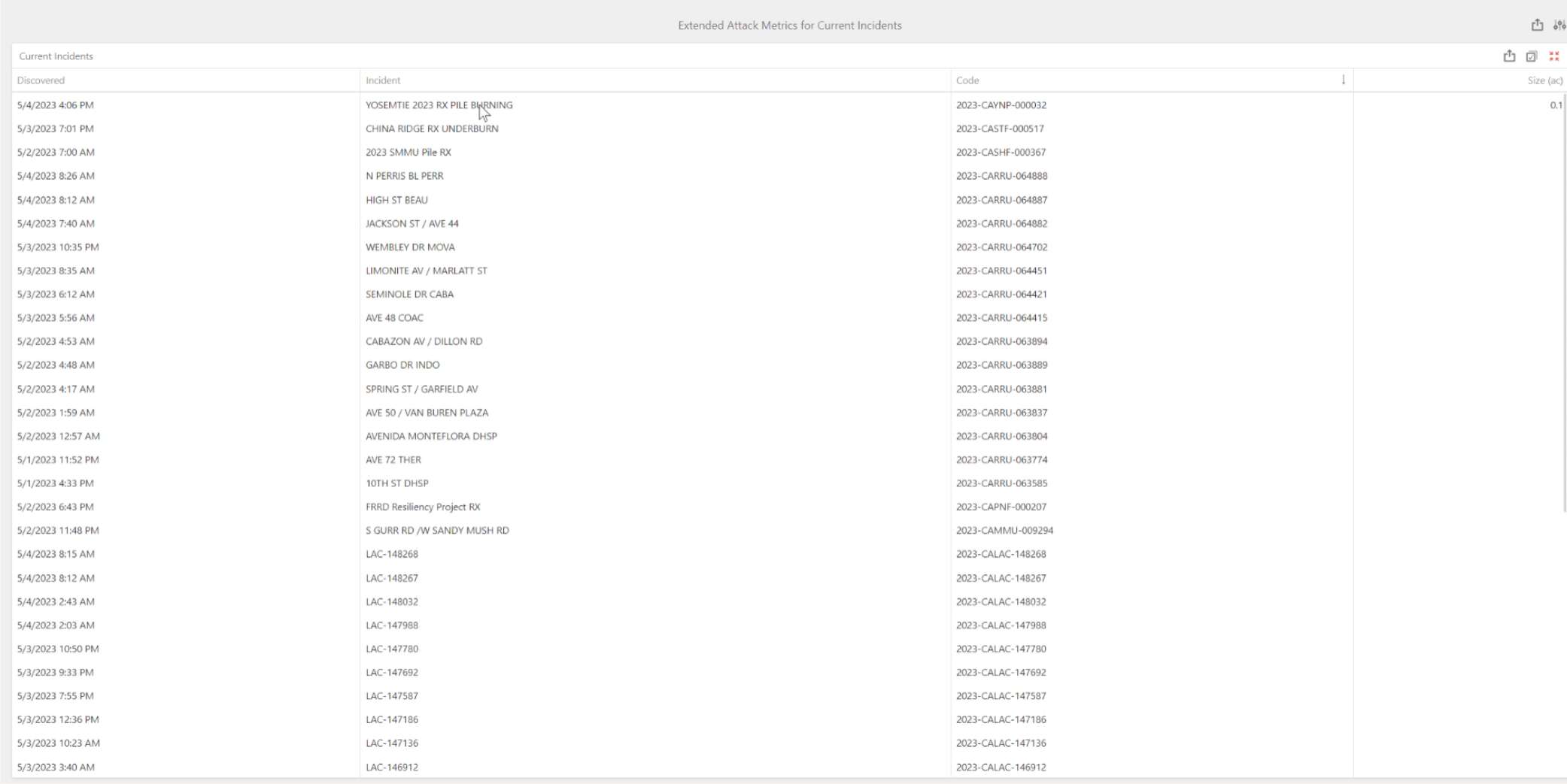 Once opened, filter the incidents by clicking on the top header panels. You have the option of filtering by date discovered, incident, code, and size. Double click on an incident (and exit out of the filter view) to view only one incident on the dashboard.