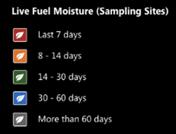 Click the LFM Stations button to view live fuel moisture stations across the area.