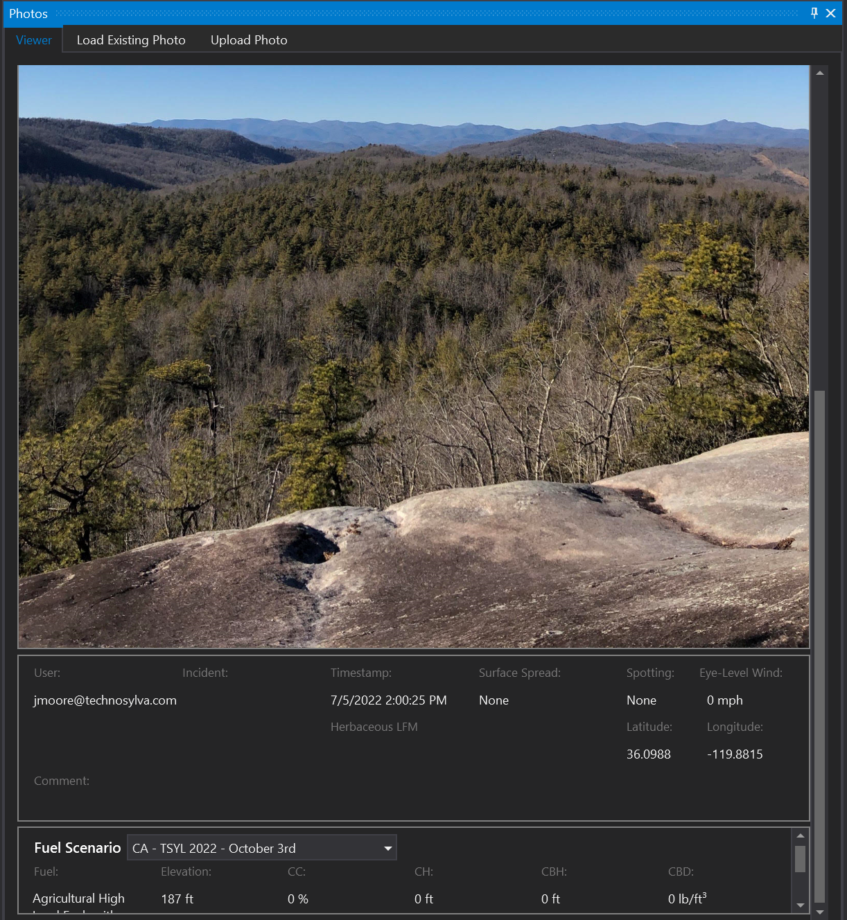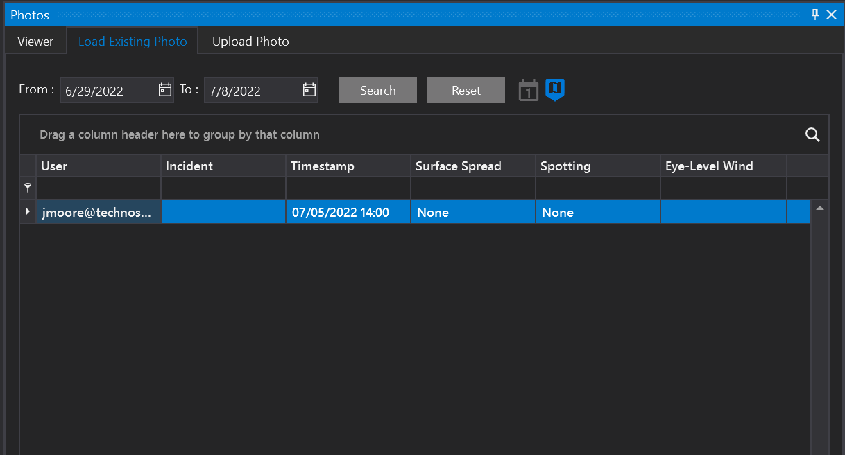 Click the Load Existing Photo tab to see all photos available for the loaded forecast. Double-click a row to see that photo.